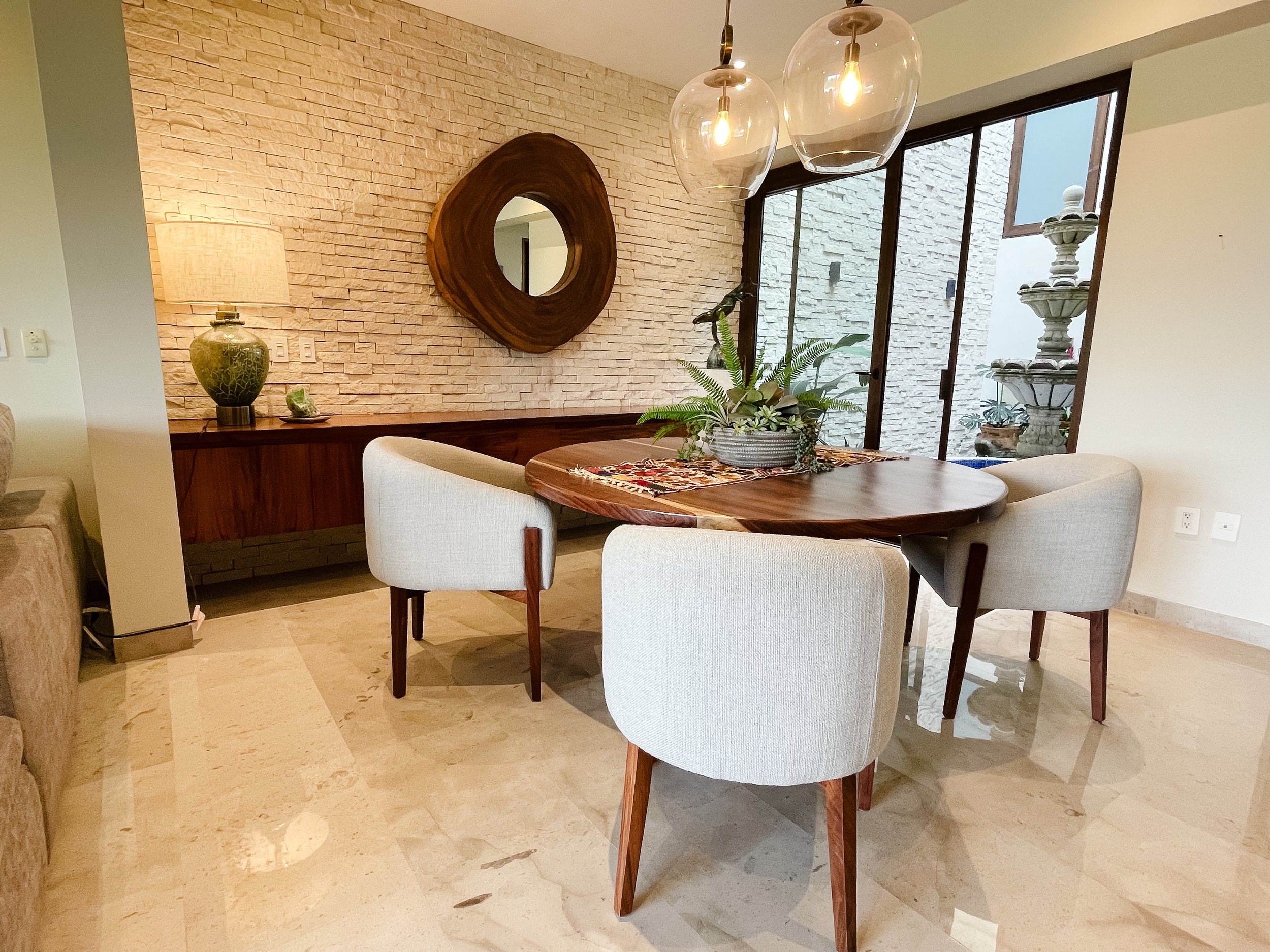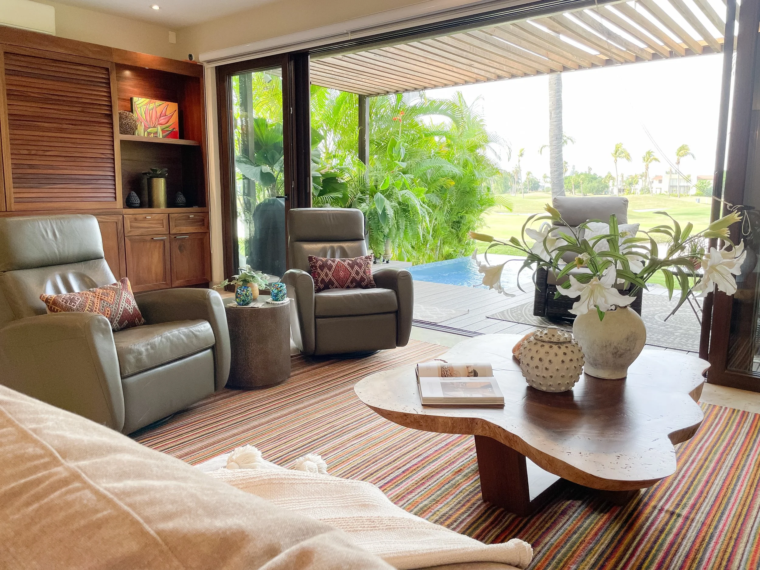 Located in the upscale El Tigre community in Nuevo Nayarit, Mexico, this townhome was changed from dull to a stunning reflection of the lively Mexican landscape. It offers expansive views of the golf course and the Sierra Madre Mountains. The project involved complete renovations and styling of the interior and exterior spaces.